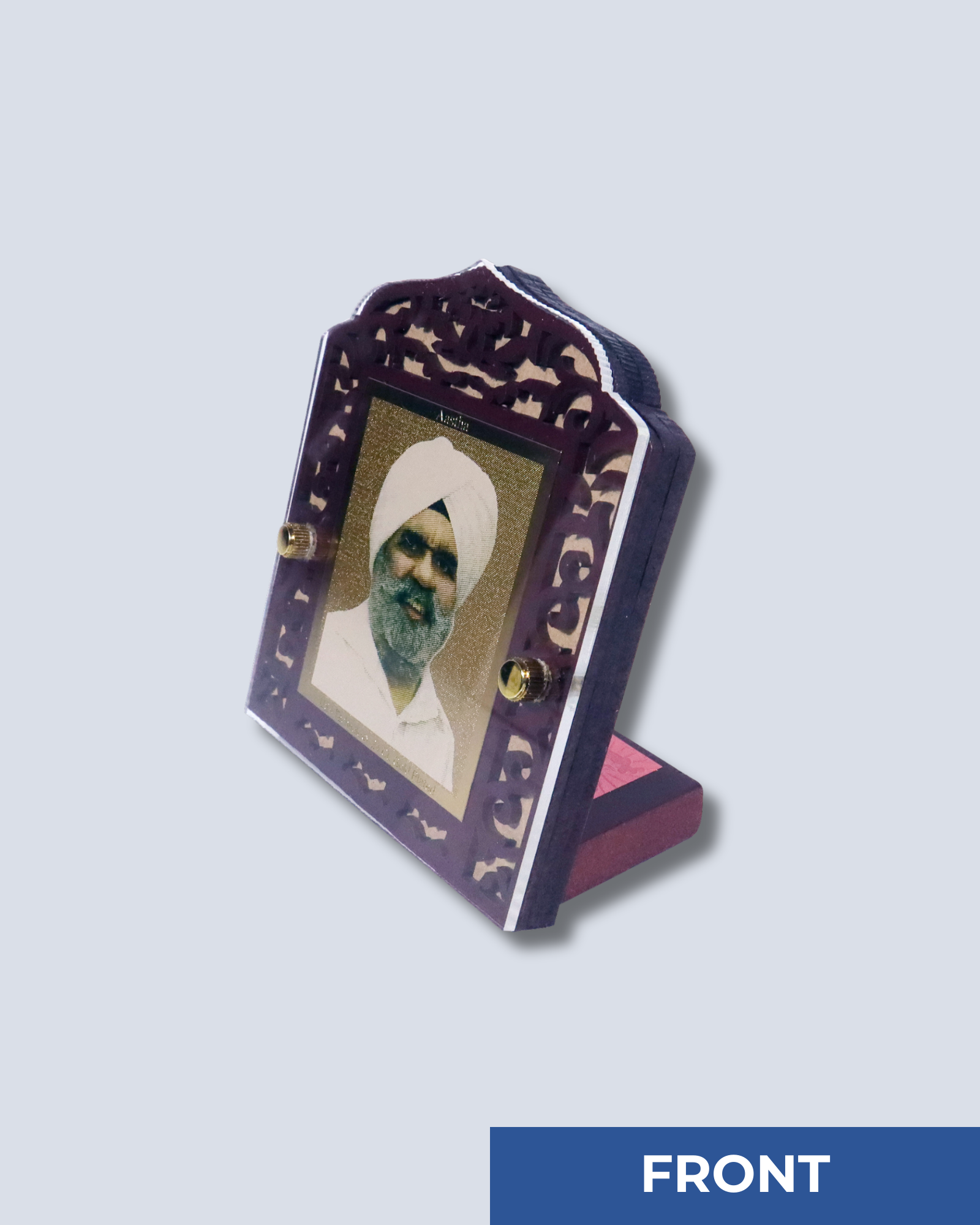 This beautifully crafted Gold-Plated Acrylic Photo Frame features a stunning gold-plated master's picture, encased in a durable acrylic layer and set within an antique wooden-finish frame. Blending tradition with elegance, this piece is perfect for displaying spiritual portraits, devotional images, or cherished memories.