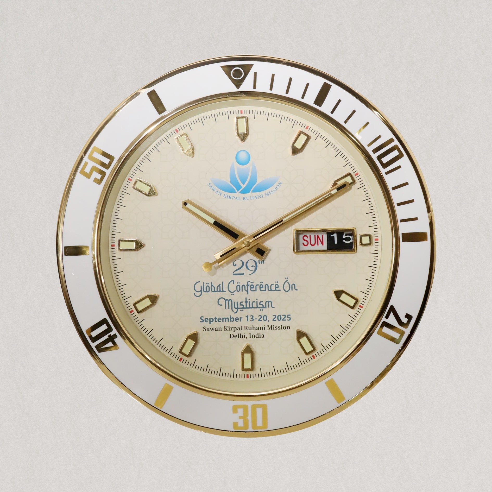 This beautifully crafted Wall Clock with silent machine features a serene design with the uplifting quote, alongside the official SKRM logo and date changer making it a perfect blend of decor and devotion.